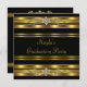 Convite para festa de formatura de ouro e preto elegante. Todos os adesivos, cartões e designs de convite que você encontrará no Zazzle são gráficos impressos sem joias reais, arcos, levantados, gravados em relevo ou peças ou peças adicionadas.