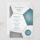 Este convite de aniversário temático de futebol esportivo apresenta a imagem de uma bola de futebol branco, cinza e teal de tamanho abstrato sobre a qual você pode personalizar todos os detalhes da festa - por katz_d_zynes