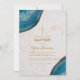 Este elegante convite para batismo, recomendado para batizar um menino, tem geodes azuis agados nos cantos superior esquerdo e inferior direito. O fundo é mármore branco. Há uma cruz de ouro sobre o texto. O nome do bebê está escrito em uma escrita caligráfica elegante, o restante em bonés. Todo texto tem uma cor de ouro, semelhante à cruz dourada.