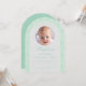 Convite Menino Baptismo Foto Moderna Arch Mint Green Scrip