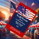 Convite de Aniversário do Dia da Independência dos EUA com tema patriótico, padrão de bandeira americana, fogos de artifício e estrelas em um fundo azul profundo. Gráficos legais que celebram o dia da independência americana enchem de um sentimento de patriotismo e bravura. A arte apresenta um convite de festa com tema patriótico com uma correspondência artística no verso. Você pode personalizar facilmente clicando no botão 'Personalizar' com sua escolha de formato e estilo. Se você gostou desta arte, você pode visitar minha loja holidays_festivals para itens correspondentes/semelhantes.