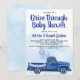 Convite de festa de bebê drive-through com caminhão azul fofo, balões e faixa em um fundo de aquarela azul. Este convite de festa de bebê covid é facilmente personalizado para o seu evento, basta adicionar os detalhes do seu evento.