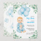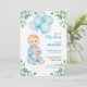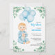 Menino fofo moderno eucalipto balões azuis Convite