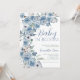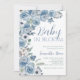 Bem-vindos ao seu pequeno bebê elegante em Bloom Chá de fraldas Invitation! Apresentando um arranjo impressionante de flores de primavera azuis e um verde delicado, este design estabelece o palco para uma celebração elegante e inspirada na natureza. Este convite é ideal para uma celebração eterno e bonita, perfeita para honrar uma futura mãe e seu bebê florescente. BBS603