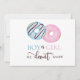 Garoto ou garota que nós rosquinhas conhecemos o cartão revelador de gênero que os itens de correspondência estão disponíveis.