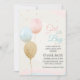 Esse gênero de gliteria giro revela que a placa de convite de festas apresenta balões de aquarela em cor rosa e azul com confete de brilho. O texto diz "Menino ou Menina?" Perfeito para uma festa de gênero no verão.