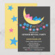 © 2013 Designs socialitas. Ursos rosas e azuis, bonitos, rosados e dormindo na lua, bebê revelam convite de festas. A design também tem uma faixa de estrelas e texto "menino ou menina?". O verso do convite tem um fundo amarelo com estrelas cor-de-rosa e azuis de tamanho semelhante. Todos os elementos de design podem ser movidos, redimensionados ou excluídos para se adequarem ao seu evento.