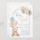 Menino ou Rapariga Revelam o convite do Balão do Urso de Teddy, de cor rosa e azul para uma festa reveladora de gênero