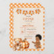 Convite Menino Outono Xadrez Urso de Pelúcia Abóbora Folha