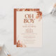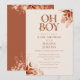 Convite de chá de bebê oh boy com tipografia terracota elegante e folhagem floral rústica. Projetado por Thisisnotme©