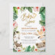 Menino Safari Animal Selgle Greenery Baby Boy Convite - Comemore a chegada do seu bebê precioso com este adorável Convite para Chás de fraldas que contém animais bonitos amigáveis da selva safari com máscaras em lindas flores tropicais de aquarela com folhas verdes da selva. Todos os textos estão pré-organizados para que você personalize fácil e rapidamente com seus próprios detalhes de Chá de fraldas.