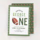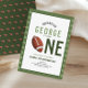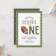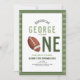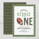 Este convite de 1º aniversário infantil moderno apresenta um design esportivo verde, com uma bola de futebol fofo fazendo o "UM", e um padrão correspondente no verso. O convite pode ser personalizado com o nome do seu filho e outros detalhes necessários para a sua festa. O complemento perfeito com tema esportivo para a primeira festa de aniversário com tema de futebol americano do seu filho.
