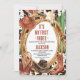 Meninos Corram Meu Primeiro primeiro aniversario Rodeio Cowboy Convite para primeiro aniversario de cowboy doce que pode ser editado para se adequar a qualquer idade. Este design apresenta vários itens temáticos de cowboy sobre um fundo de impressão de cochicho ou vaca. O texto aparece dentro do quadro de corda.