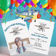 Meninos Fofa Avião Viagem Crianças Aniversário Aquarela Convite. Personalize com o nome da sua criança e detalhes da festa de aniversário.