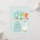 Este design de primeiro aniversario de convite para de garotos bonitos e brancos apresenta um ganso de bobo com um chapéu de festa azul, e pode ser personalizado com toda a informação que você precisa para a primeira festa de seu filho em tipografia bonita e colorida. O convite também apresenta um padrão de gingham azul correspondente no verso. Os convites de fazenda perfeitos para o seu primeiro aniversário!