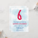6 aniversário crianças garoto convite de aniversário de 6 azul de festa para um garoto de 6 anos com fontes divertidas escrevendo e número de aquarela divertida.