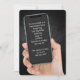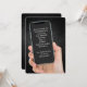 Celular na mão sobre fundo de rock negro para uma festa de aposentadoria. Todo texto é editável.