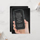 Telefone celular numa mão sobre fundo de rocha negra para uma festa de aniversário 25. Todo texto é editável.