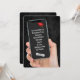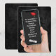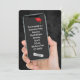 Uma mão segurando um smartphone com diploma de graduação de 2025 em um fundo preto de couro para uma festa de formatura. Todo texto é editável. O diploma e o boné de formando podem ser eliminados.