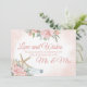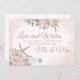Casamento na praia "Amor e votos para o Sr. e a Sra." Deixe uma mensagem na garrafa para o Sr. e a Sra. placa de casamento na praia floral. Flores rosa e coral com estrela-do-mar e dólar-da-areia, placa de casamento na praia de destino. Texto editável.
