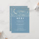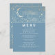 Noite estrelada e lua crescente poeirentos, azuis e cartões de cardápio dourados