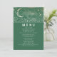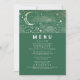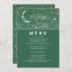 Noite estrelada e lua crescente verdes e cartões de cardápio de ouro