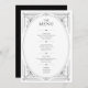 Menu de casamento elegante com moldura preta vintage em um fundo branco personalizado, estilo art déco. Tipografia com tons pretos personalizáveis.