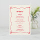 Convite Menu de Casamento Vermelho Whimsical com Letras Ma