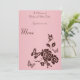 Este cartão de menu com flores rosa e marrom e borboletas faz parte da coleção de casamento mostrada abaixo. Ele está em papel branco básico. Se você preferir um cartão de menu menos caro, ele pode ser feito nos cartões de prateleira que têm tamanho 4"x9", brilhante na frente e fosco no verso. Envie um e-mail para niteowlstudio@gmail.com se você precisar de ajuda para personalizar este cartão, ou se você quiser o cartão de prateleira feito como um cartão de menu.