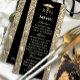 "Esse cartão luxuoso de menus preto e dourado é projetado para comemorações da graduação médica, apresentando um sofisticado fundo preto com sofisticação de ouro cintilante. A elegante tipografia e o símbolo médico caduceus acrescentam um toque refinado, fazer-o perfeito para janto de graduação ou recepção."