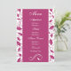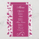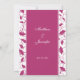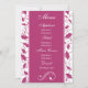 Este menu de recepção de casamento personalizado é obrigatório se você planeja servir o jantar na sua recepção. Este menu personalizado apresenta um design floral rosa fúcsia em um fundo branco e fúcsia. Nós também oferecemos este menu de casamento em uma versão mais estreita.
