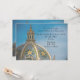Detalhes do cardápio do evento de recepção de casamento no Mosaic Dome do Balboa Park San Diego, design do convite. Dê aos seus convidados uma prévia do que esperar na sua recepção com este cartão de recepção que oferece espaço para informações como o cardápio básico, código de vestimenta, entretenimento e localização. O design da frente é uma fotografia da cúpula mosaico localizada no Balboa Park, San Diego. A cúpula está à esquerda do design, com nuvens brancas e céu azul à direita. A fotografia é sobreposta com uma camada branca clara para fazer a impressão no convite se destacar, mas você pode personalizá-la removendo-a. O texto no lado direito é dividido em três seções, mas você pode personalizá-lo de acordo com as suas necessidades. Como mostrado, a fonte é Parisian, que dá um visual dos anos 1920, mas você pode personalizar a fonte. O verso tem a mesma fotografia e design, com um modelo para adicionar detalhes adicionais. Personalize-o com os detalhes que tornarão seu evento especial. Para casamentos e outros eventos e ocasiões no Balboa Park, San Diego, Califórnia. Visite a Coleção de Casamentos do Balboa Park para outros produtos com este design. Não vê este design em um produto que você deseja? Entre em contato com o designer com suas necessidades.