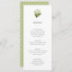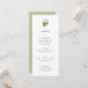 O texto elegante fácil de personalizar lista as opções de menu do seu evento no novo estilo tradicional do milênio e apresenta uma paleta de cores limpas de branco e verde com muito espaço branco de composição e uma ilustração antiga de uma flor de hydrangea verde e branca.