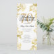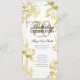 Design de "Programa de Festa de aniversário" elegante com Convênio Floral em Dourado com texto personalizado.