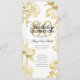 Design de "Programa de Festa de aniversário" elegante com Convênio Floral em Dourado com texto personalizado.