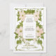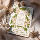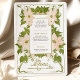 Adicione um toque de elegância de vintage à sua recepção de casamento com este belo menu de janto floral. A frente do cardápio apresenta florescências de pêssego suaves com folhas verdes e peludas em estilo botânico clássico, moldando os detalhes da refeição com sofisticação e graça. Colocada contra um fundo verde-oliva quente, esta design inspirada na safra é perfeita para casamentos com temas naturais ou russos. A parte de trás apresenta um simples e elegante roteiro "Menu", que oferece uma encantadora manutenção para seus convidados. Impresso no estoque de cartão de alta qualidade, este menu eleva qualquer configuração de mesa com o estilo do eterno.