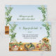 Celebre o amor com charme rústico! Este cartão de acompanhamento para chá de panela de mercado de agricultores apresenta cestas de aquarela com produtos frescos, girassóis, potes de mel e ervas, perfeito para um chá com tema de comida local ou jardim. É uma escolha única para noivas que adoram estilo orgânico e vibrações campestres. Ótimo para chás de noiva na primavera ou verão, brunch ou festas na cozinha. O verso revela que tudo foi comprado e a mesa está vazia. Use como cartão informativo, cartão de informações de presente ou como pedido de receita. Disponível com produtos combinando.