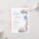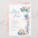 Mergulho rosa em cinco sob o mar A Sereia Aniversário apresenta ilustrações adoráveis de aquarelas de peixes, cavalos marinhos e águas-vivas em tons de púrpura, aqua, lacre e rosa.
