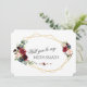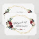 Design de cartão único e elegante com belos buquês de flores de merlot, burgundy e azul marinho em aquarela, moldura em dourado falso, divisor floral, belo script de escrita à mão, em um fundo branco. Use a ferramenta Personalizar para adicionar suas informações, alterar fontes, cores e plano de fundo. Para itens correspondentes, visite minha Coleção Floral Merlot, Azul Marinho Dourado. Entre em contato se precisar de ajuda. Você pode substituir DAMA DE HONRA por MADRINHA...