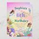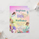 Uma Sereia temia um convite pessoal de aniversário de idade com uma Sereia com cabelo escuro e outros sob as criaturas marinhas. Altere facilmente as informações para a sua design de festa de aniversário personalizada. O fundo tem uma cor arco-íris.