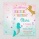 Magical mermaid and unicorn birthday invitation for your little girl's special day.