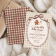 Celebrate the mom to be with this Merry Little Gingerbread Winter Christmas Baby Shower Invitation. Featuring a sweet watercolor gingerbread cookie, baby bottle, soft neutral brown gingham background, and festive hand drawn bow accents, this cozy and whimsical holiday design is perfect for a winter or Christmas themed baby shower. This editable template makes it simple to personalize and share your joyful seasonal celebration.