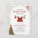Convite Merry Little Girl Gingham Christmas Baby Shower