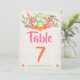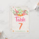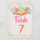 Cartão número de mesa de Fiesta Mexicana fabuloso com cacto aquarela, flores laranja e rosa em um fundo de linho levemente desgastado.
