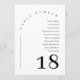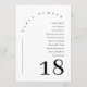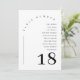 Esta simples e elegante placa de número de tabela minimalista apresenta uma letra serif simples em forma de arco num fundo branco. Você pode personalizar/personalizar o cartão de número da tabela e os nomes de convidados para qualquer coisa que quiser. Observe que a trabalho de arte de elementos gráficos e de linha não pode ser editada, excluída, movida ou alterada. Eles estão consertados. Você pode personalizar e personalizar o número da tabela de assentos para ajustado das necessidades de seu casamento ou evento de festa.