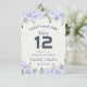 Modelos de cartão de lugar de assento de casamento floral botânico em aquarela em cor de lavanda azul claro vintage / Número da mesa / Cartões de acompanhante.