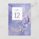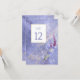 Esta elegante coleção de casamento usa uma paleta colorida impressionante, incluindo o periwinkle, a ameixa e o blues macio para criar papelaria e material de festa correspondentes para o seu dia especial. Os florais de aquarelas e os traçados de tinta cintilantes proporcionam um fundo de captura de olhos. Script manuscrito emparelhado com fonte serif clássica empresta um toque moderno. O cartão 'Table Number' do casamento mostrado aqui fornece uma textura de fundo brilhante e uma modelo para adicionar facilmente seu próprio número, iniciais e data do casamento. Procure ID954 para ver outras peças e opções de cor para este conjunto.