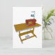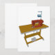 Uma mesa de costura com uma máquina de costura. Este design parece realmente eficaz nestes Convites