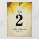 Uma linda decoração de recepção de casamento com girassóis. Números de mesa com um bonito desenho floral amarelo na frente e atrás, perfeito para casamentos em celeiros, casamentos em jardins e temas de casamento com girassóis. Cada número de mesa deve ser personalizado e adicionado individualmente ao seu carrinho de compras. Os cartões de número de mesa são frente e verso. Certifique-se de alterar o texto em ambos os lados. Criado por Victoria da VG Invites. Para ver mais da decoração de recepção de casamento com girassóis de Victoria, visite www.zazzle.com/vginvites