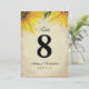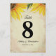 Este número de mesa de recepção de casamento de dupla face apresenta belos girassóis amarelos em um fundo vintage e letras pretas. Eles são perfeitos para temas de recepção de casamento com girassóis, festas de jardim, casamentos em celeiros e muito mais. Cada número de mesa deve ser personalizado e adicionado individualmente ao seu carrinho de compras. Os cartões de número de mesa são de dois lados com espaço para adicionar os nomes da noiva e do noivo. Certifique-se de alterar as letras em ambos os lados. Criado por Victoria na VG Invites. Para ver mais enfeites de recepção de casamento com girassóis de Victoria visite www.zazzle.com/vginvites